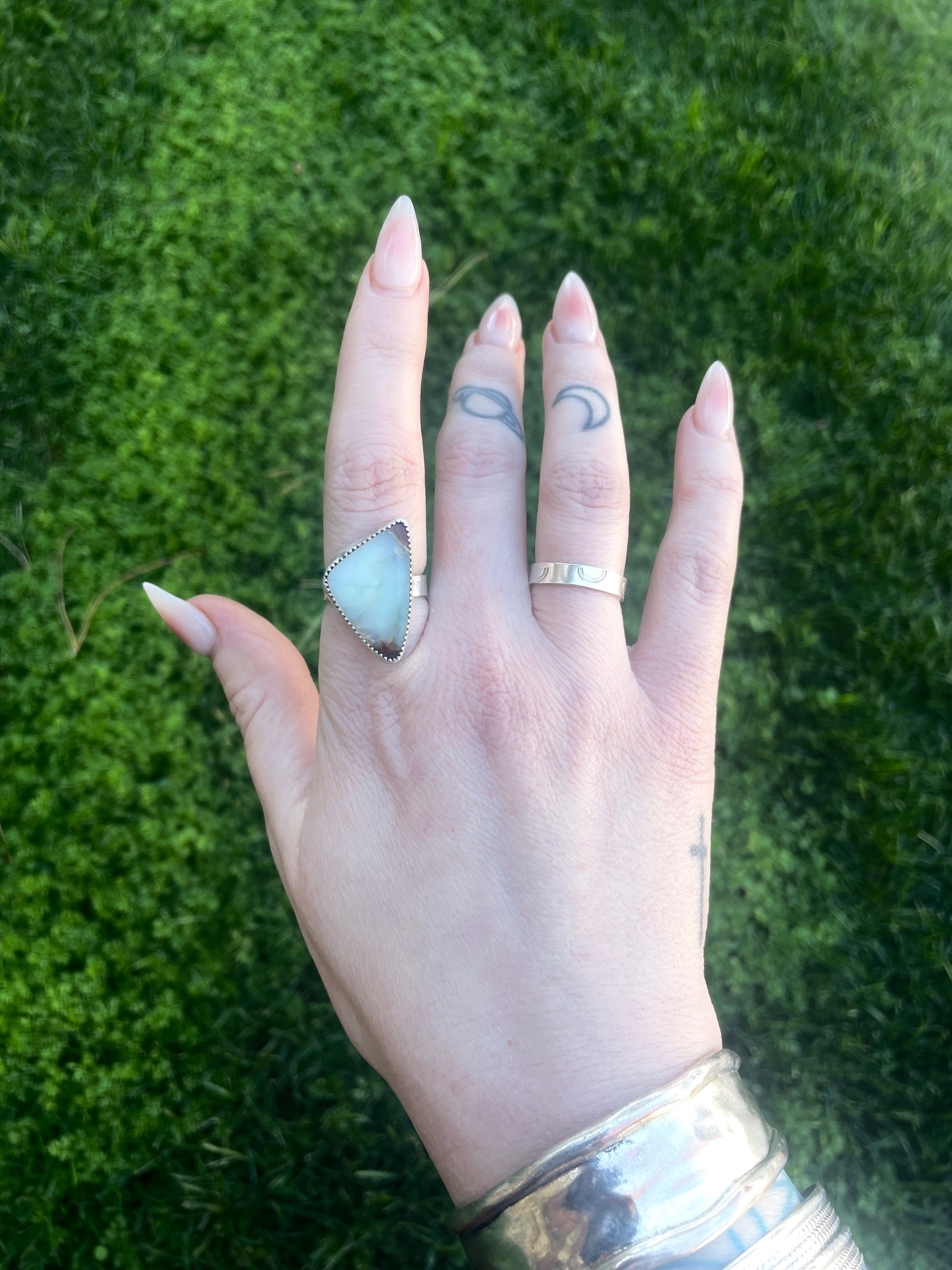 Handmade Chrysoprase Silver Ring Size 7. Sterling Silver.
