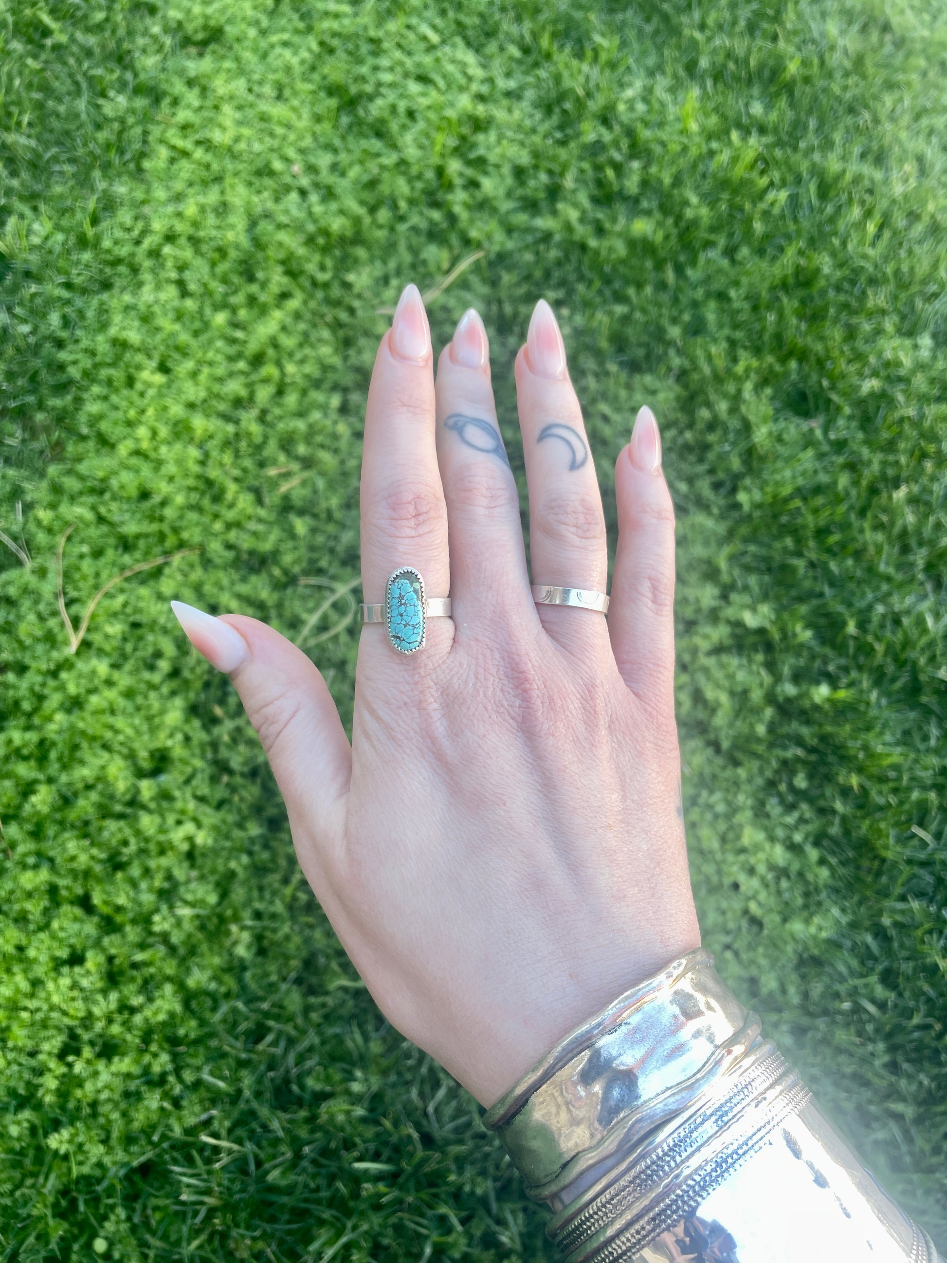 Handmade sterling silver authentic Hubei Turquoise ring. Size 8.