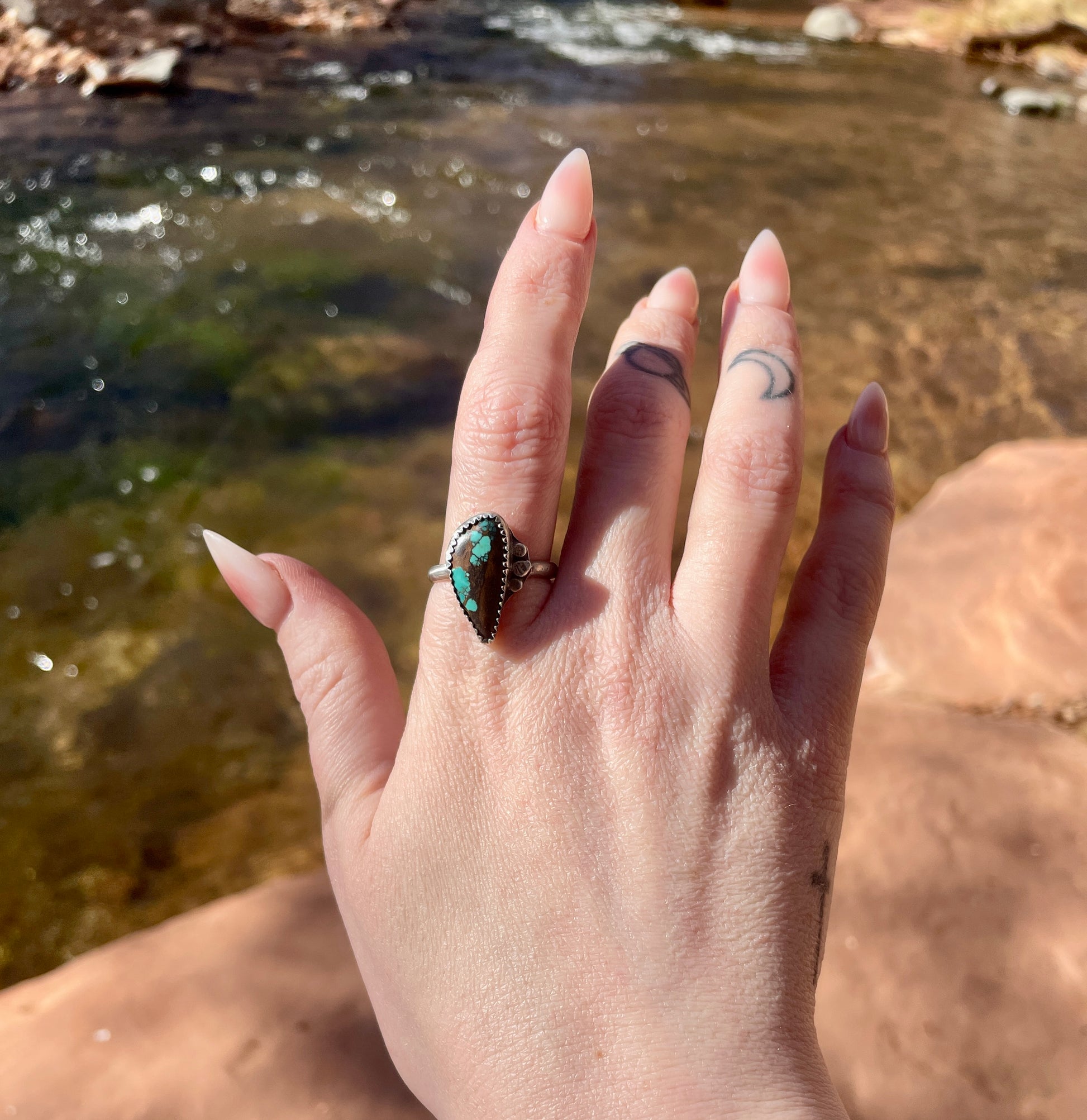 Handmade sterling silver authentic Hubei Turquoise ring. Size 9.75. Can comfortable fit size 9.5.