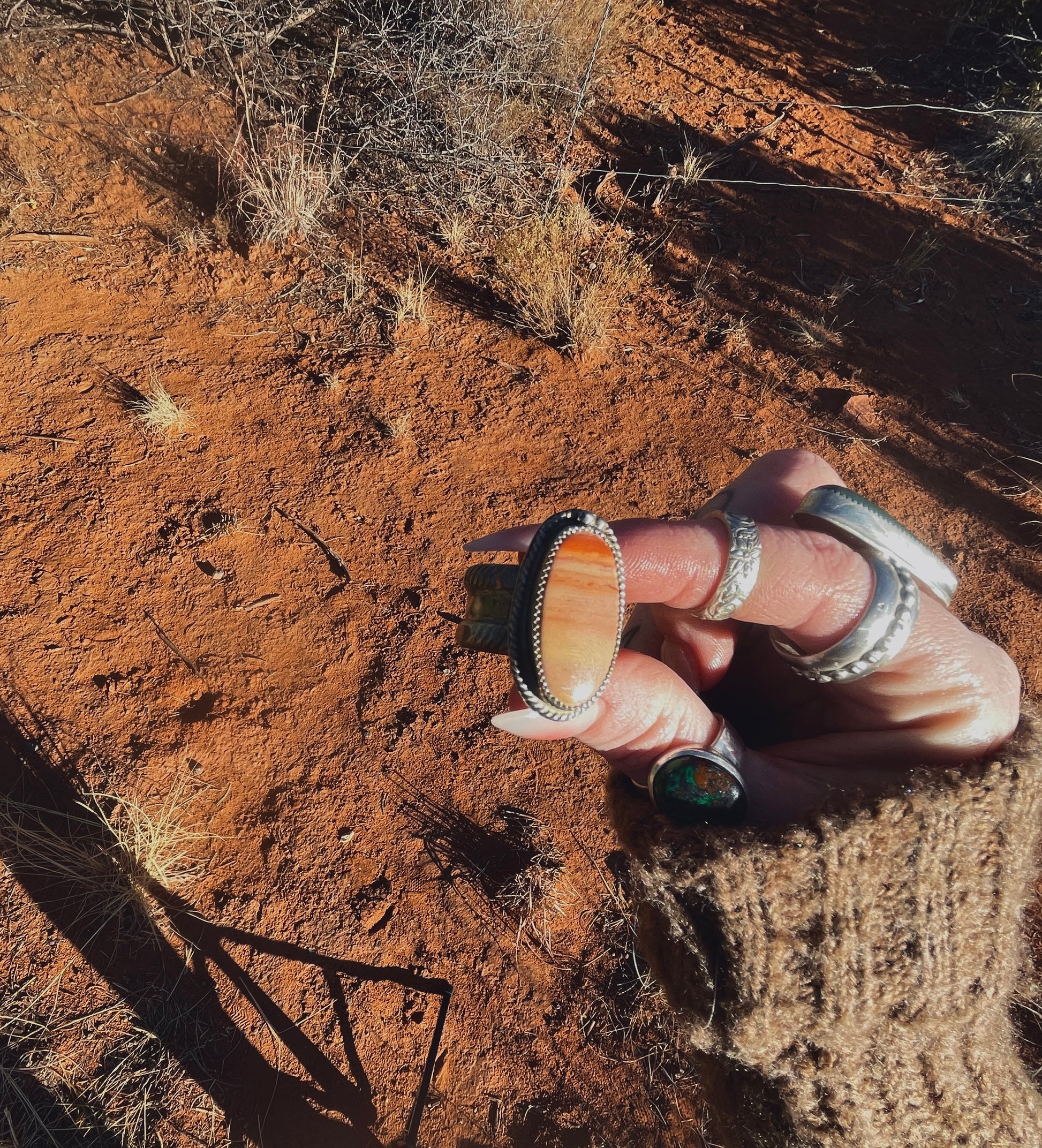 Handmade Sedona Picture Jasper Silver Ring Size 10.5 - Thick Banded